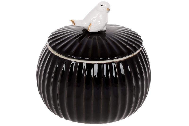 Банка порцелянова з фігурною пташкою 500 мл, колір - чорний гл...