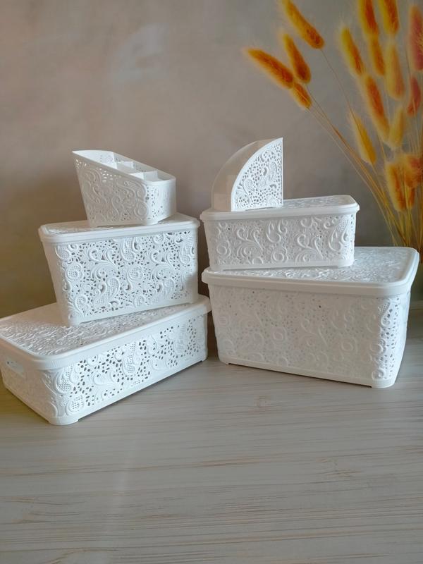 Білий набір ажурних контейнерів з двома підставкаами