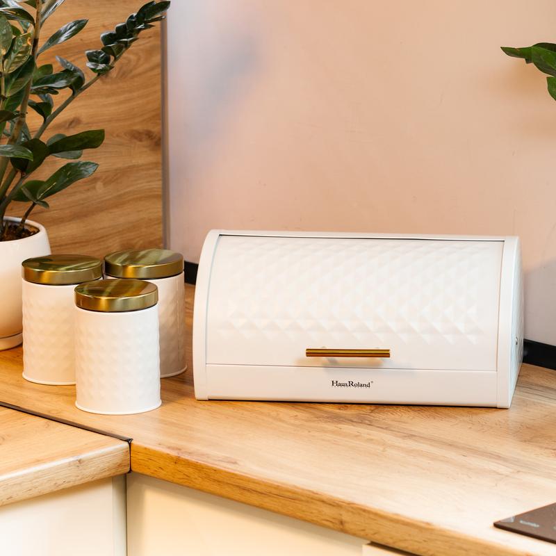 Хлебница с банками для хранения сыпучих продуктов 3 шт ø 14 см набор белый