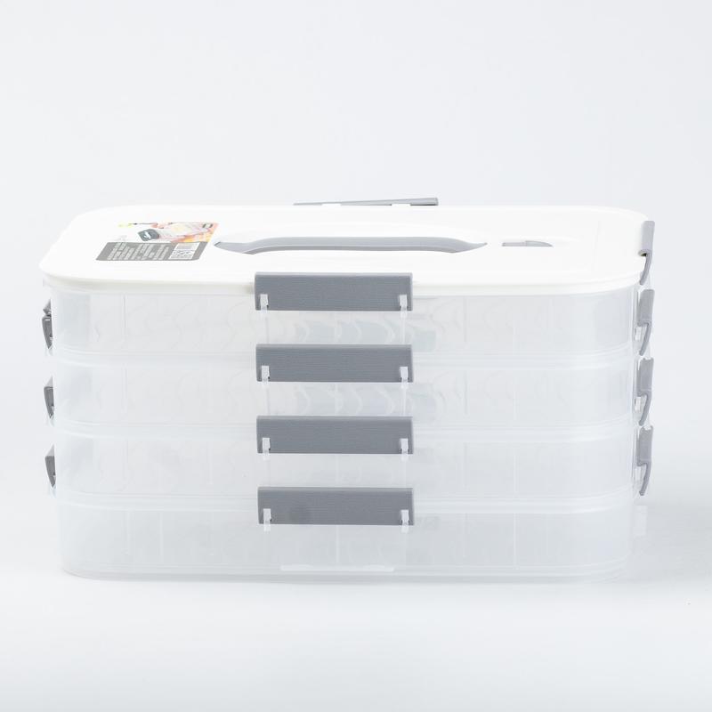 Этот четырехъярусный контейнер для хранения и замораживания продуктов изготовлен из прозрачного пластика и имеет отдельные секции, благодаря чему можно компактно организовать хранение нескольких ингредиентов. Контейнер плотно закрывается, что обеспечивает сохранение свежести продуктов и предотвращает попадание внутрь посторонних запахов. Емкость подходит для хранения различных пищевых продуктов, включая фрукты, овощи, мясо, рыбу и сыр. Обратите внимание: Не используйте контейнер в микроволновой печи, духовке или посудомоечной машине. Не подвергайте его воздействию экстремальных температур. При должном уходе контейнер прослужит вам много лет.