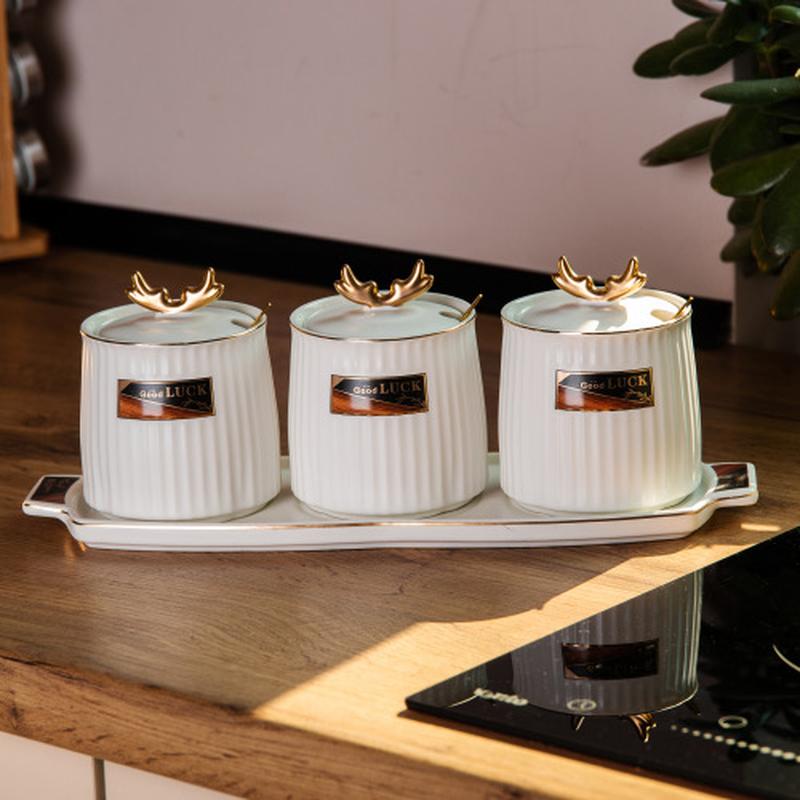 Набор баночек для хранения продуктов состоит из трех банок объемом 400 мл, выполненных из высококачественной керамики. Каждая банка имеет керамическую крышку, которая защищает содержимое от высыхания, сохраняя его вкус и аромат. Каждая банка имеет ложечку из нержавеющей стали, что добавляет удобства в использовании. Ложечки идеально подходят для точной дозировки сыпучих продуктов, таких как сахар, соль, кофе или специи. Благодаря использованию высококачественных материалов, банки являются долговечными, прочными и легко моются, что обеспечивает их длительный срок службы. Набор дополнен керамической подставкой, обеспечивающей аккуратное хранение банок. Подставка позволяет удобно разместить емкости на кухонной полке или столе, сохраняя пространство и добавляя организованность. Этот набор емкостей для сыпучих продуктов не только практичен, но и эстетично привлекателен, он подчеркивает ваше внимание к деталям и любовь к качественной кухонной посуде. Характеристики: Материал банок: керамика Материал подставки: керамика Объем баночек для специй: 400 мл