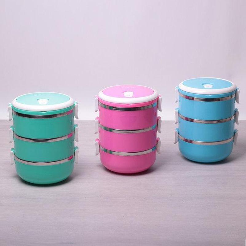 Ланч бокс Kamille обладает высоким качеством, надежностью, компактными размерами и красочным эстетичным дизайном. Ланч бокс прекрасно подходит для транспортировки домашних обедов и будет просто незаменимым для офисных работников или школьников. Такой ланч бокс упакован в яркую дизайнерскую коробку и может стать прекрасным подарком для Ваших близких и друзей. Характеристика: - Количество емкостей: 3 - Объем: 2100 мл - Размеры: 16.5*15*20см Материал: - корпус, крышка и ручки из пластика - внутренняя емкость из нержавеющей стали Особенности: - эксклюзивный яркий дизайн - удобные ручки - высокопрочная конструкция - не подходит для первых блюд - не подходит для разогрева в микроволновых печах