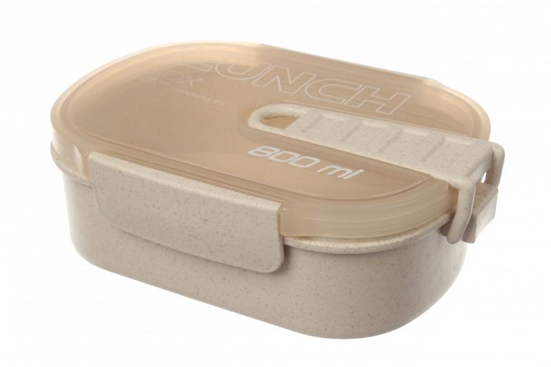 Еко ланч-бокс одноярусный, контейнер для еды 800 мл бежевый, ланч бокс для еды с вилкой и...