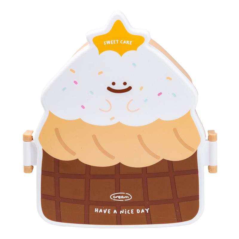 Детский ланч бокс на две секции 950 мл пластиковый с вилкой и ложкой "пирожное" коричневый...