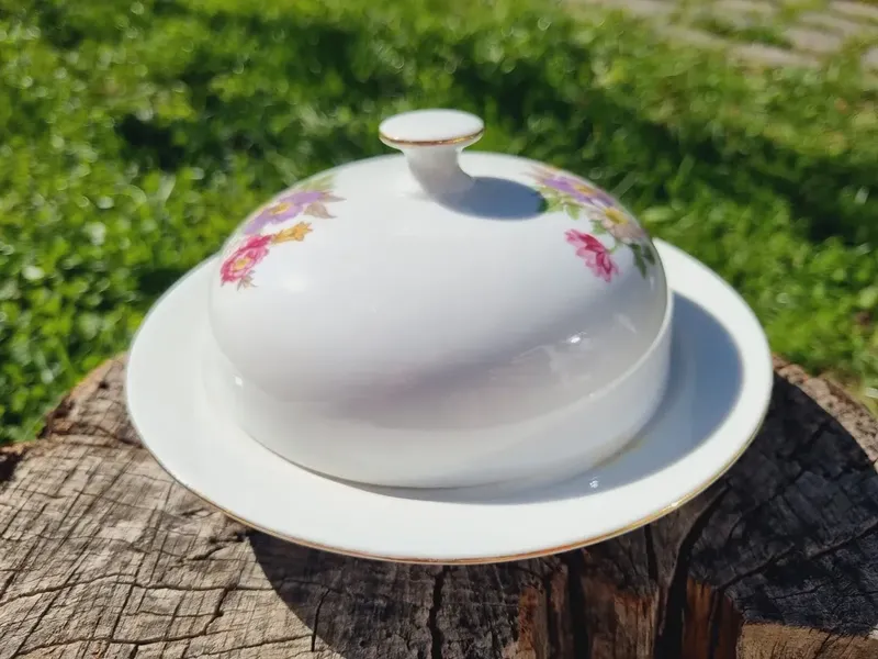 Красивая винтажная масленка с нежным цветочным рисунком "мейсенский букет".