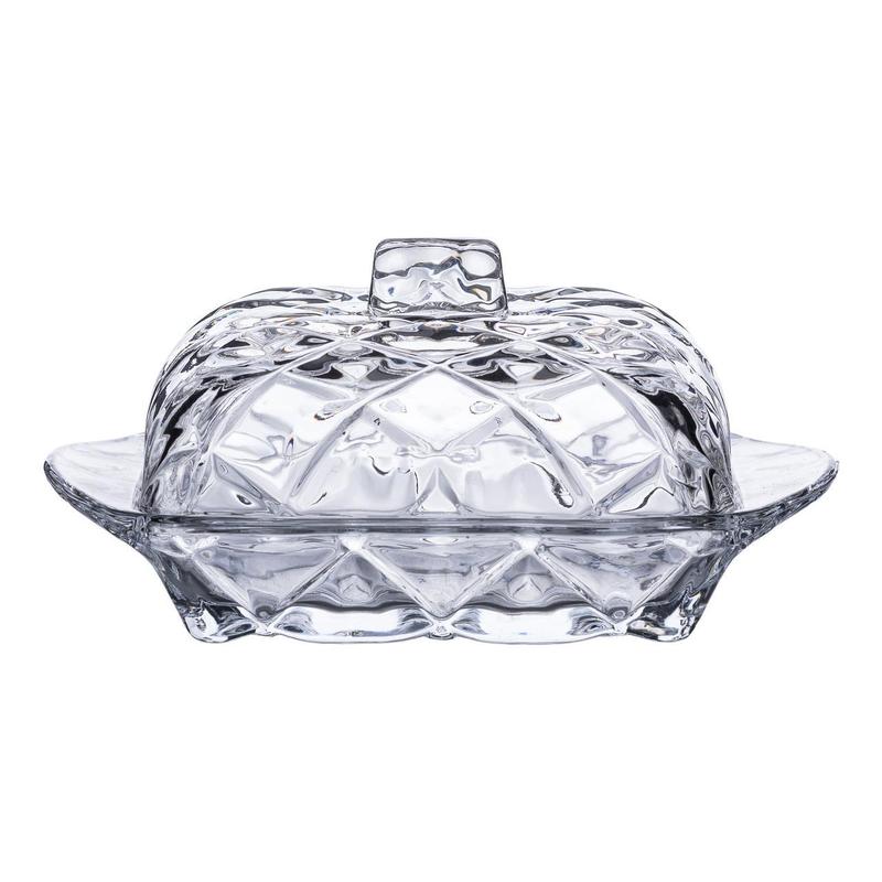 Стеклянная масленка с крышкой - это практичный и стильный аксессуар для вашей кухни или праздничного стола. Она изготовлена из прозрачного стекла, которое позволяет удобно контролировать количество масла и добавляет сервировке эстетики. Компактный размер делает его удобным в использовании, а крышка защищает содержимое от пыли и посторонних запахов. Основные характеристики: Материал: стекло; Размер: 16.5х10.5х8 см. Высота масленки составляет 8 см, что позволяет размещать ее в холодильнике или на столе, не занимая много места. Благодаря классическому дизайну она идеально вписывается в любой интерьер - от современного до традиционного. Толстое стекло обеспечивает долговечность и стойкость к механическим повреждениям. Эта масленка станет отличным дополнением к повседневному использованию или может быть хорошим подарком для любителей хорошей кухонной атрибутики. Ее удобно мыть вручную или в посудомоечной машине.