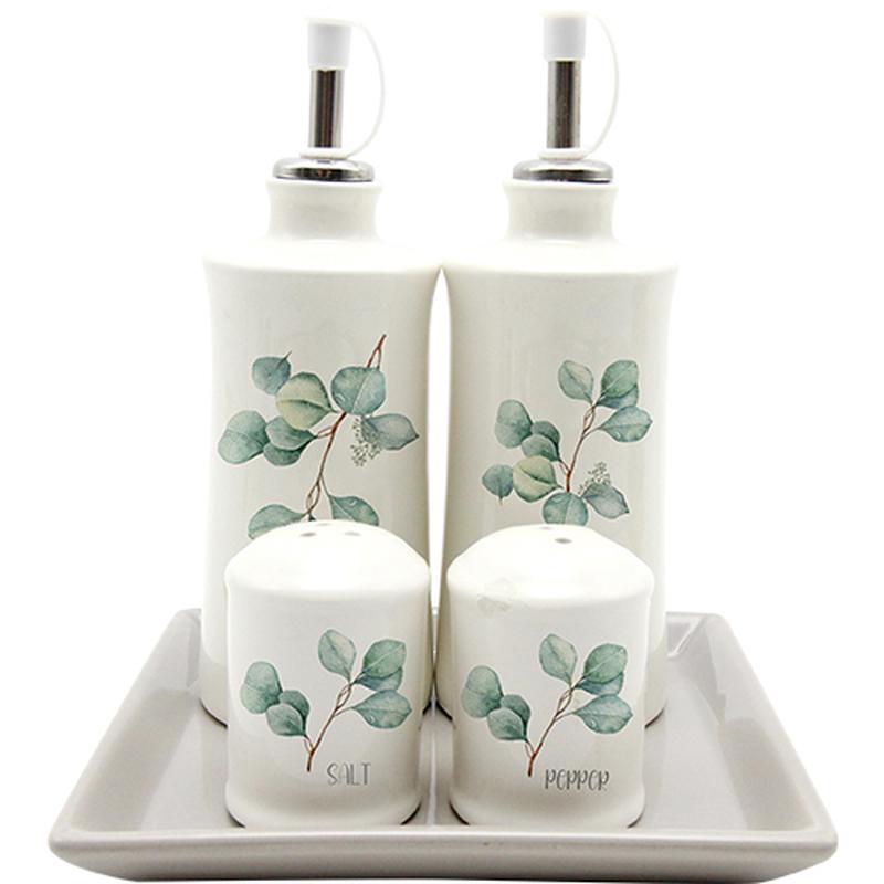 700-06-16 Набор 5пр. 2 бутылки для масла / уксуса набор для соли и перца на кер. подставке 'Флора' Материал: Керамика