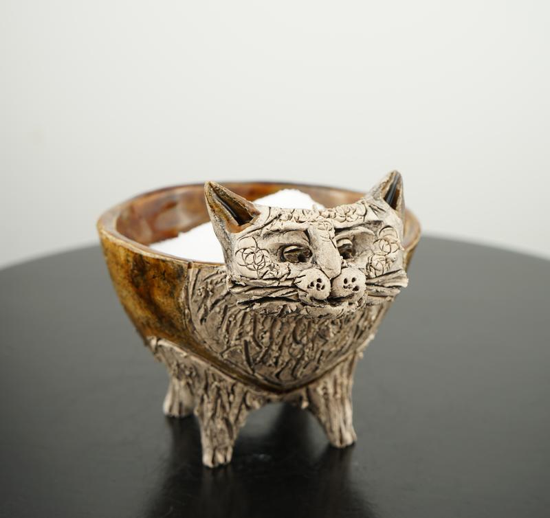 Авторская, керамическая соленка в форме кота, ручной работы. Такой сувенир, отлично украсит любую кухню, лучший подарок по любому поводу. 6x8см. На замовлення (3 дні)