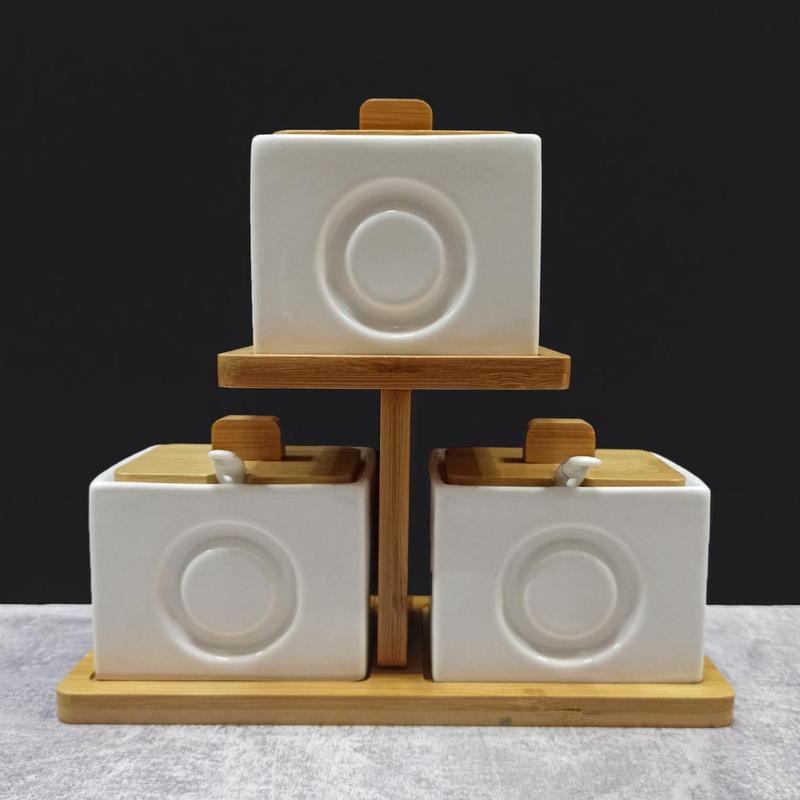 Набор емкостей солонка 260 мл. с ложками на бамбуковой подставке pj01961