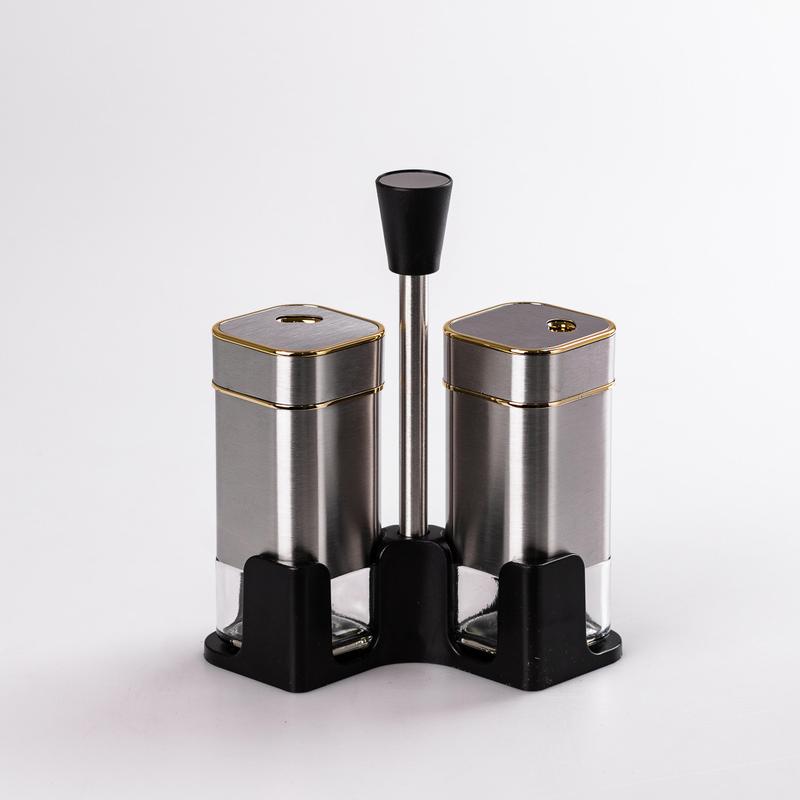 Набор емкостей для специй на подставке 2 баночки по 120 мл хромированые, баночки для специ...