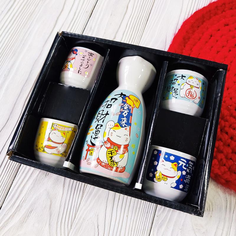 Японский традиционный набор для саке манеки-неко (5 предметов)