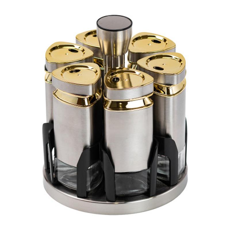 Набір ємностей для спецій на підставці 6 баночки по 120 мл, хром для сучасної кухні
