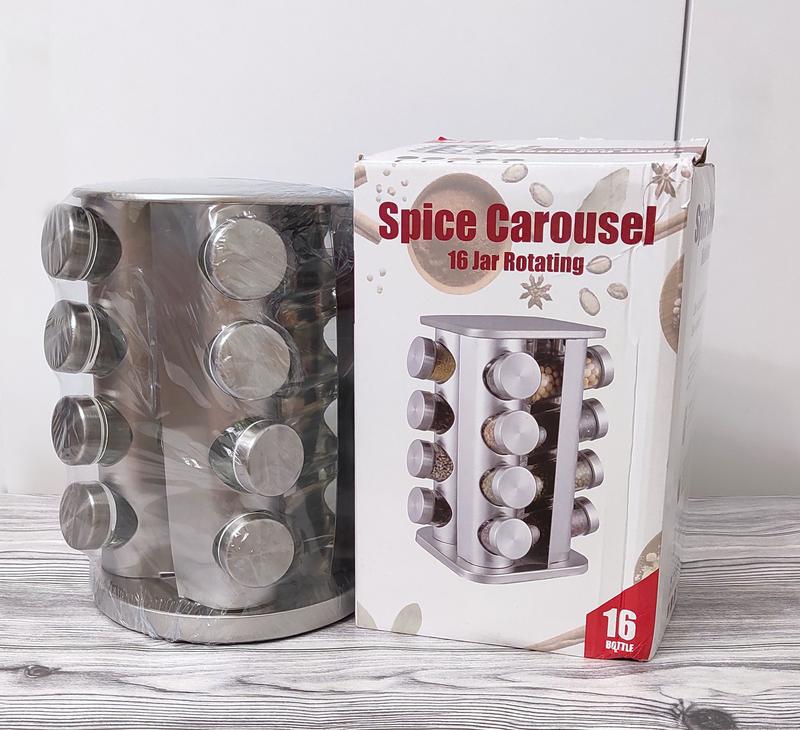 Набор для специй spice carousel 16 баночек стекло на металлической подставке