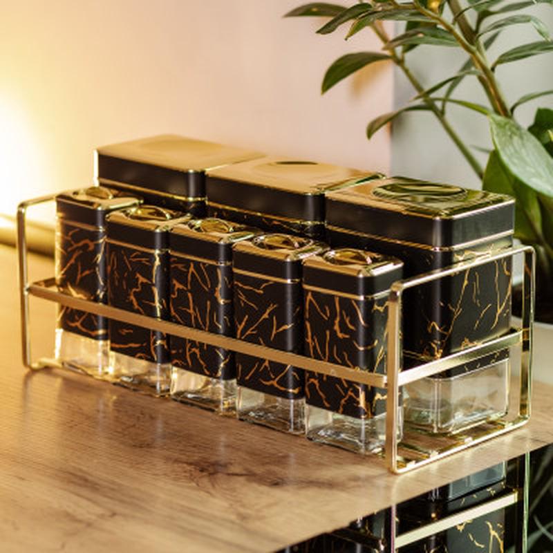 Набір ємностей для зберігання 8 штук по 650/150 мл на металевій підставці, чорний