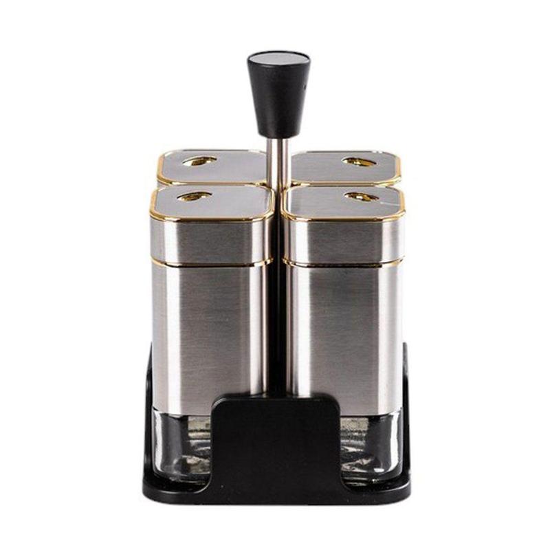 Набір баночок для спецій 4 шт по 120 мл зі скла з герметичними кришками та підставкою