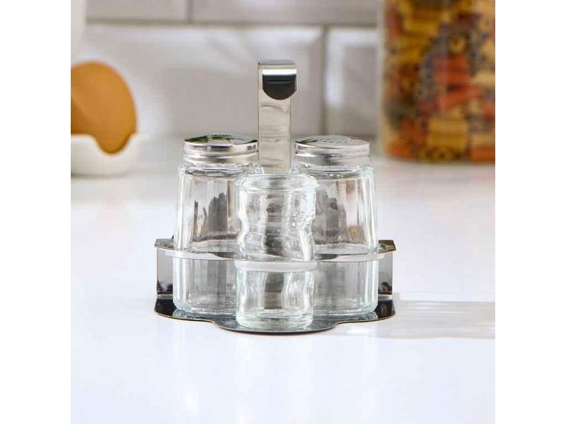 Модель: Нео Набор : 4пр. Материал емкости: Стекло Материал подставки: Нержавеющая сталь. Материал крышки: Нержавеющая сталь Объем соль/перец: 50 мл Высота соль/перец: 7 см Упаковка : Фирменная коробка Страна производитель :К.Н.Р Описание Стильный дизайн набора добавит элегантности и утонченности вашей кухне или обеденному столу. Набор является полезным и стильным аксессуаром, который удовлетворит потребности в организации и подачи специй, а также придаст внешнюю привлекательность вашему кулинарному пространству.