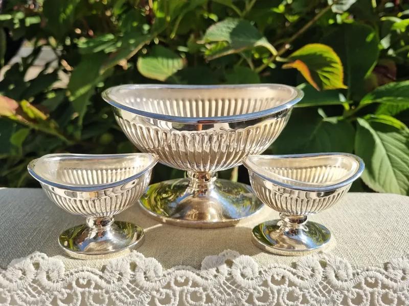 Необыкновенно изысканный набор спецовщиков, отлично подойдет для соли, перца, разнообразных соусов. Германия. Глубокое покрытие серебром. Отличное состояние.