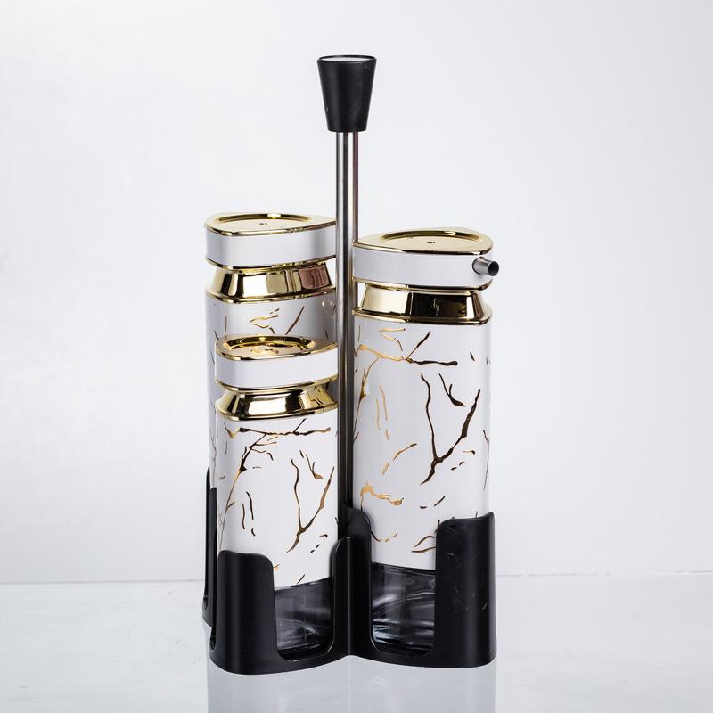 Набор баночек для специй и жидких текстур 4 предмета на подставке белый мрамор hp-1331