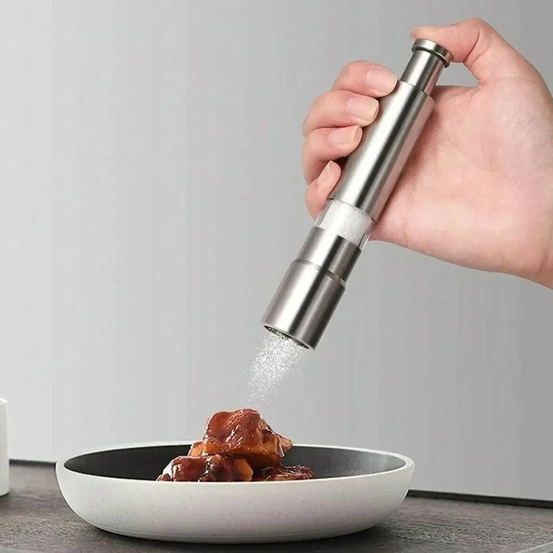 Ручний подрібнювач для солі та перцю з нержавіючої сталі, XL-552 / Механічний млин для спецій Переваги: Підходить для різних видів приправ. Виготовлений із нержавіючої сталі Просте управління Компактні розміри Легко миється Опис: Механічний млин для спецій XL-552 - це надійний та зручний інструмент, який дозволяє легко дозувати та подрібнювати сіль, перець та інші спеції з мінімальними зусиллями. Виготовлений з високоякісної нержавіючої сталі, що забезпечує його міцність та довговічність. Нержавіюча сталь надає цьому подрібнювачу стильного і сучасного вигляду, що робить його відмінним доповненням до будь-якої кухні. Зручна форма та ергономічний дизайн роблять його простим у використанні - достатньо натиснути на верхню частину млина, і сіль чи перець подрібнюватимуться до потрібного ступеня. Також зручна конструкція робить очищення млина від залишків спецій швидким і простим процесом. Завдяки механічному принципу роботи, цей млин для перцю не вимагає підключення до електромережі або батарейок. Характеристики: Тип: перелік млин Матеріал: нержавіюча сталь + скло Призначення: для перцю, солі, спецій Управління: механічне Довжина загальна: 153 мм. Діаметр: 26 мм Вага: 200 г Колір: сріблястий Комплектація: Млин для солі та перцю XL-552 Упаковка