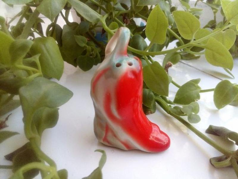 Оригинальная солонка (перечница, спецовочница) в форме острого перца, времен СССР. Статуэточка - фарфор, надглазурная роспись. СССР, 50-годы. Размер 7 см 5×2, 5. На дне оттиск цены и клеймо "1С". Пластиковая пробочка на донышке заменена на новую. Состояние идеальное, без сколов, трещин и прочих дефектов.