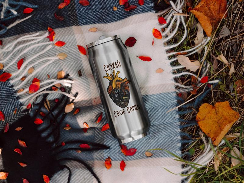 металлические двойные стенки, объем 500мл. Крышка герметична