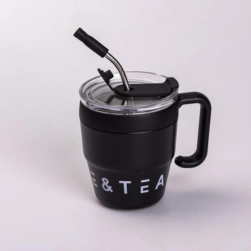 Термокружка с трубочкой для кофе и чая 480 мл кружка термос термочашка 10 см черная