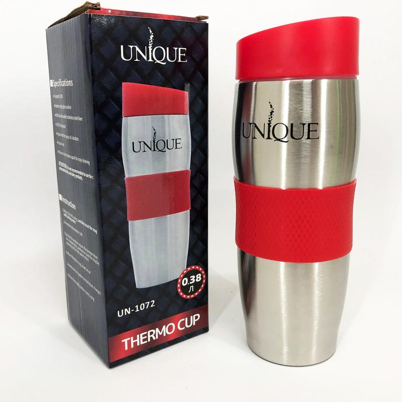 Термокружка UNIQUE 0,38 л (UN-1072) ― это термокружка, выполненная из нержавеющей стали с эмалированным глянцевым покрытием устойчивым к царапинам и механическим повреждениям.Кружка имеет прорезиненную вставку разных цветов, благодаря чему она не скользит в руках и ее удобно держать.Стильный и яркий дизайн добавит хорошего настроения в любую погоду. Термокружка гарантированно сохраняет не только температуру напитка, но и заботится о вашем здоровье и безопасности. В термокружке использована термозащищенная крышка, позволяющая сохранить ваш напиток горячим до 5 часов, а холодным до 12. Такая кружка идеально подойдет для людей, которые из-за напряженного графика могут выпить кофе только в машине или по дороге на работу.В зимнее время согревает Вас горячим напитком, а летнюю жару охадит Вас прохладным напитком.