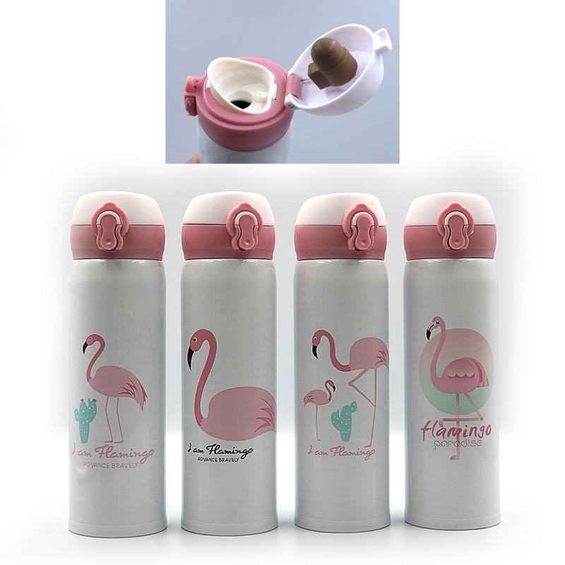 Термос-бутылка 500 мл металлический "фламинго" вакуумная термокружка для кофе и чая термос