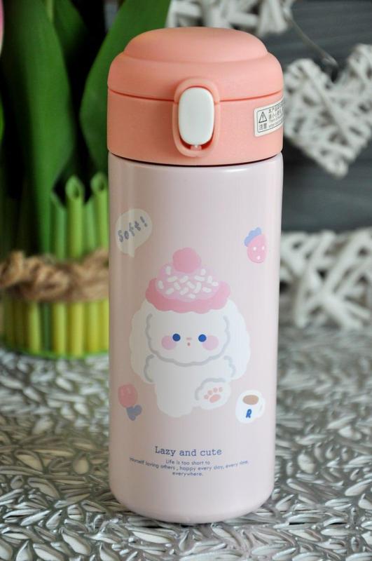 Детский термос с поилкой розовый, 380мл