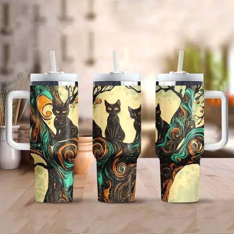 Термокружка 1180мл из Нержавеющей Стали с Крышкой и Соломинкой - Милый Мультяшный Дизайн, Идеально для Горячих и Холодных Напоев, Идеальный Подарок на Рождество, Хэллоуин, День Рождения - Отлично для Авто, Путешествие, Офиса, Дома Под заказ 10-18 дней