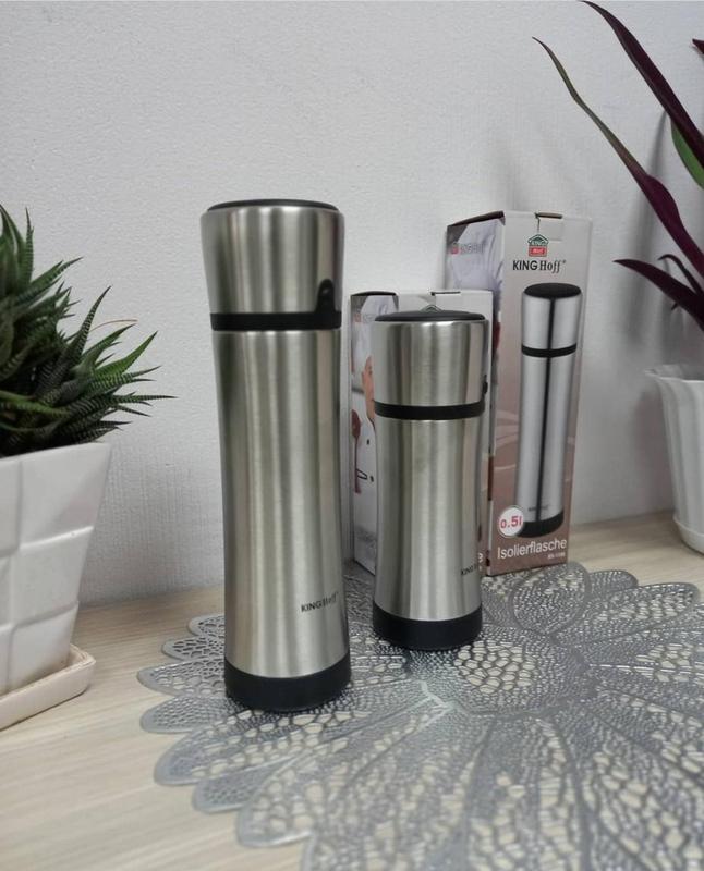 Термос 0,35л KingHoff KH1187 Характеристика: Корпус: высококачественная нержавеющая сталь; Объем: 0,35 л; Клапанный механизм открывания; Средняя продолжительность тепла до 10 часов; Производитель: Kinghoff (Польша).