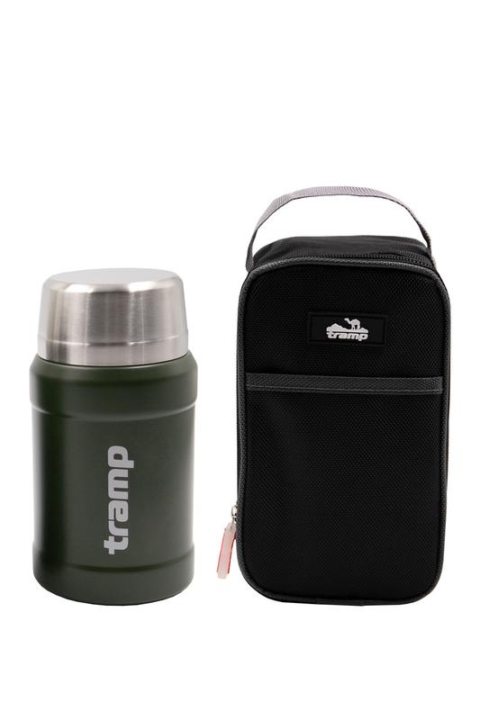 Термос Tramp з широким горлом 0,8 л Термос харчовий Tramp TRC-132 з широким горлом 0.8 л. Термос з широким горлом для перших та других страв. Зберігає тепло до 12 годин. Особливості: Двостінна кришка не обпікає руки і може використовуватися як миска Комплектується чохлом та складаною ложкою Чохол має ручку для транспортування та фронтальну кишеню. Кольори: чорний, оливковий, темно-синій Характеристики: Вага: 527 г Об’єм: 0,8 л Розміри: висота – 190 мм діаметр - 97 мм Матеріал: нержавіюча сталь