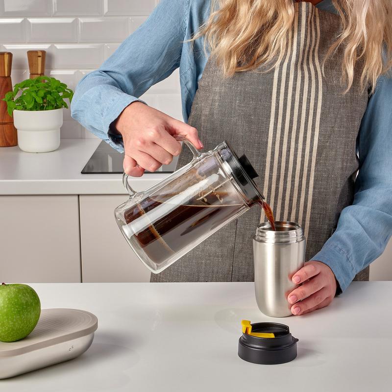 Розміри товару: Висота: 16 см Ємність: 35 сл Головні риси: Цей герметичний горнятко для подорожей можна брати з собою куди завгодно і використовувати, не проливаючи. Ідеально підходить для автомобільних подорожей, екскурсій або поїздок на роботу, коли ви хочете взяти з собою улюблений гарячий або холодний напій. Термогорнятко ENVÄLDIG зберігає гарячі або холодні напої теплими, коли ви перебуваєте в дорозі. Герметична кришка легко відкривається однією рукою. Його зручно тримати в руці, він поміщається в бічні кишені сумок і автомобільні підсклянники. Дизайнер: Стіна Ланнеског Розміри і вага упаковки: Упаковки: 1 Артикульний номер: 80511525 Ширина: 8 см Висота: 8 см Довжина: 15 см Вага: 0.2 кг Корисна інформація: Перед першим використанням вимийте виріб. IKEA of Sweden AB SE-343 81 Älmhult, ******** Інструкція з догляду: Можна мити в посудомийній машині. Матеріали та догляд: Основна частина / дно: нержавіюча сталь Кришка: поліпропіленовий пластик Ущільнення: Силіконова гума