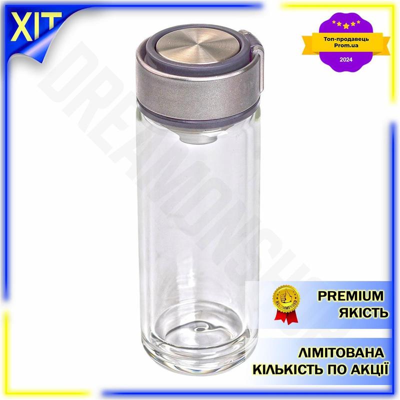Dm термос со стеклянной спецификация 2.2 колбой 330 мл серое боросиликатное стекло для гор...
