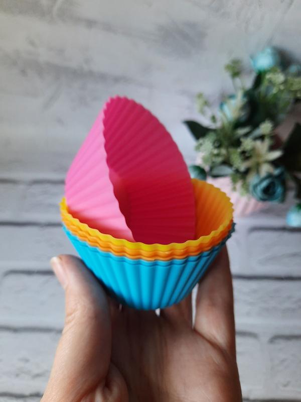 У наявності набір форм для кексів 6шт🧁🧁🧁 📏Розмір: діаметр у верхній частині - 7 см, низу 4.5 см, вгору - 3см 🧁 Ці форми підходять як для випікання в газових та електричних плитах, так і для охолодження та заморожування. 👆При правильному використанні вони будуть служити довгий час. 🧁 Форми не вимагають змащування, тому що завдяки спеціальному силікону тісто не прилипає до її стінок. 🧁Вони відрізняються великою теплопровідністю, а також високою гнучкістю: їх можна згортати, згинати-розгинати. Стійкі до впливу температури від -40 °C до +230 °C