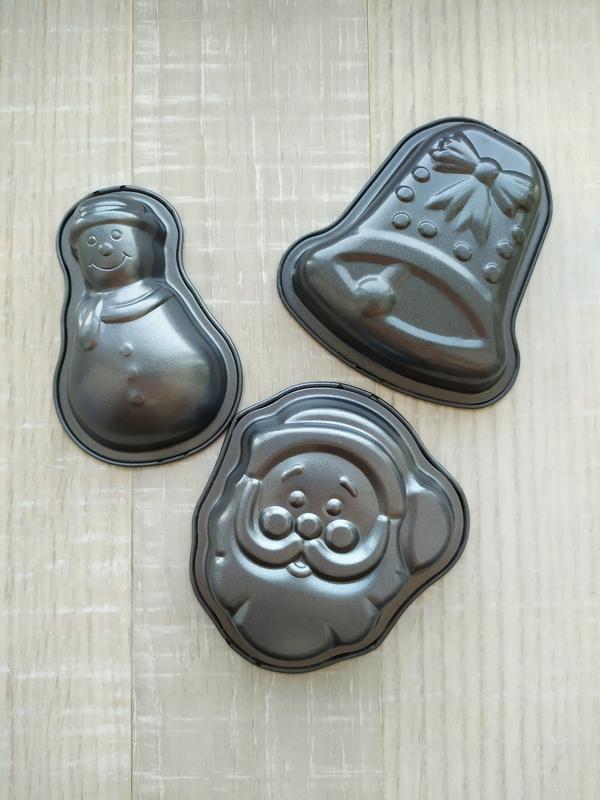 Новые формы для выпечки из металла, довольно глубокие. Цена указана за все вместе. снеговик 11 х 7,5 см дзвоник 11 х 10,5 см Санта 11 х 10 см.