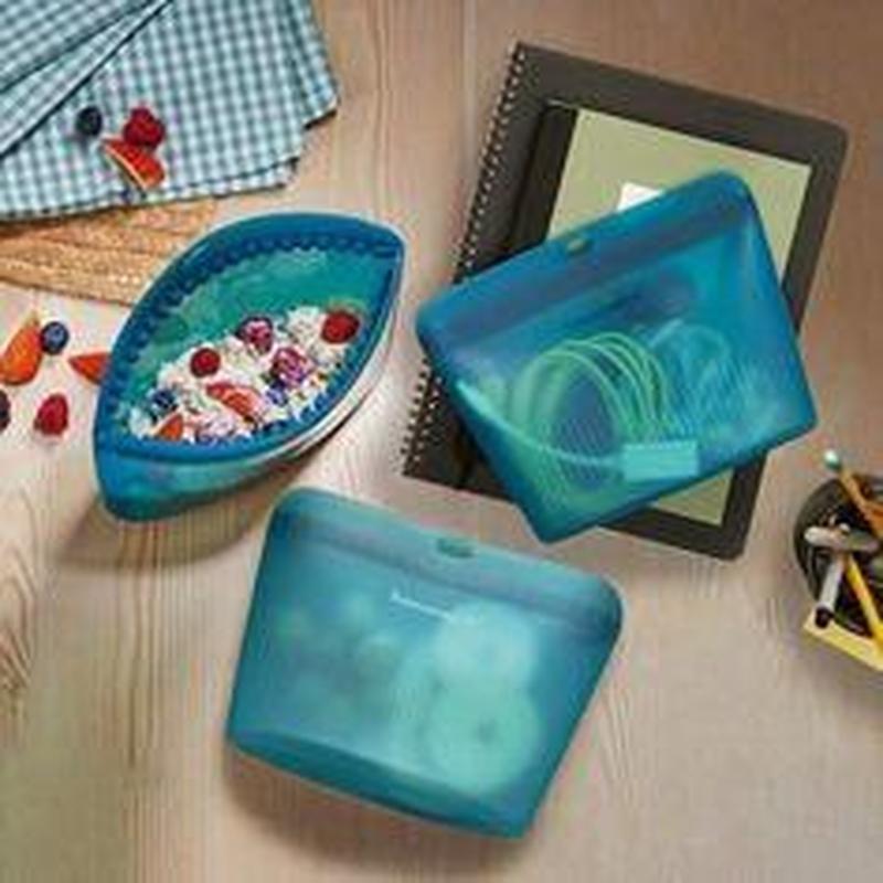 Інновація в зберіганні та приготуванні! Переваги * Завдяки високоякісному силіконовому матеріалу та дизайну силіконові контейнери Ultimate підходять для абсолютно різних повсякденних завдань! * Можна використовувати їх для зберігання сухих інгредієнтів на кухонних полицях, зберігати продукти в холодильнику. * Можна розморожувати про запас, наприклад, ягоди, гриби, заготовки страв в морозильній камері. * Можна розігрівати в мікрохвильовій печі. * У контейнері можна відразу замаринувати або панірувати м'ясо або рибу, овочі без використання пакетів. Після маринування ви зможете відразу запікати без фольги, прямо у виробі в духовій шафі! * Високоякісний силікон витримує перепади температур від -25 °C до +220 ° C, даний матеріал не містить бісфенол А, латекс, фталати і прослужить довгий час. * Спеціальна застібка-блискавка дозволяє легко закривати виріб і забезпечує герметичне зберігання. Щоб закрити контейнер Ultimate, з'єднайте застібку-блискавку від одного кута до іншого. * Завдяки гнучкому матеріалу і розміру Ви можете акуратно розмістити їх в будь-якому місці, навіть в обмеженому просторі. * Напівпрозорі матові стінки, через які видно вміст. * Спеціальний отвір для кріплення карабіна. Вироби зручно брати з собою в дорогу, на пікнік, крім того, силіконовий контейнер особливо стане в нагоді в поїздках як для продуктів харчування, так і для важливих дрібниць в подорожі. * Завдяки продуманому дизайну силіконові контейнери Ultimate стійкі на полицях і робочій поверхні, їх легко заповнювати. * Силіконовий контейнер можна мити в посудомийній машині. Перед пранням виверніть силіконовий контейнер навиворіт. Для очищення залишків їжі в застібці-блискавці використовуйте йоржик. РЕКОМЕНДАЦІЇ ПО ВИКОРИСТАННЮ: * Виріб не володіє вологоповітрянепроникними властивостями. Зберігати в холодильнику, запікати або перевозити рідкі інгредієнти рекомендується тільки у вертикальному положенні * Перед заморожуванням в горизонтальному положенні рекомендується перші 3-4 години зберігати продукти, що містять рідину, у вертикальному положенні в морозильній камері. Потім силіконовий контейнер Ultimate можна розташувати горизонтально. * Не переповнюйте виріб вище відмітки максимального наповнення на основі, що важливо при заморожуванні продуктів. * Перед тим як поставити виріб в мікрохвильову піч для розігрівання злегка відкрийте виріб. * При використанні в мікрохвильовій печі завжди використовуйте низьку потужність. Рекомендована потужність 360 Вт. * При запіканні в духовій шафі завжди ставте силіконовий контейнер Ultimate тільки у Технічна інформація * Рекомендуємо готувати в духовій шафі до 1 години. Рекомендована температура 180 ° C, максимальна 220 ° C. * Не готуйте в силіконовому контейнері в режимі гриль і на варильних поверхнях. * Використовуйте силіконові рукавиці-прихватки, коли ставите або дістаєте виріб з мікрохвильової печі і духової шафи. * Не використовуйте гострі кухонні прилади, які можуть пошкодити виріб.