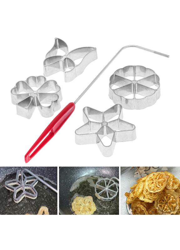 Погрузитесь в увлекательный процесс домашней выпечки с нашим набором формочек для хвороста! Этот практичный и надежный набор обеспечит идеальное приготовление тонкого и хрустящего хвороста. Набор включает в себя четыре формочки с удобной ручкой-держателем, что делает процесс приготовления не только простым, но и приятным. Наши формы для выпечки позволяют легко и быстро приготовить вкуснейшие печенья, которые можно подавать горячими, посыпанными сахарной пудрой. Отличный выбор для десерта или угощения на празднике! Комплектация: 4 формы для хвороста; ручка-держатель. Рецепт и инструкция по приготовлению: Смешайте просеянную муку с сахаром, постепенно добавляйте молоко, яйцо и сливочное масло. Дайте тесту постоять в холодильнике на один час. Разогрейте масло в кастрюле до кипения. Накрутите нужную формочку на ручку-держатель и опускайте её в кипящее масло, а затем — в охлажденное тесто. Жарьте до золотистой корочки, затем выложите хворост на салфетку для удаления лишнего масла. Дайте хворосту остыть и обильно посыпьте сахарной пудрой. Советы по хранению: Готовый хворост рекомендуется хранить в плотно закрытой банке, чтобы сохранить свежесть и избежать запаха прогорклого масла. В таком виде он останется идеальным угощением на несколько дней. Характеристики Материал форм: нержавеющая сталь Длина с ручкой: 26 см, рабочая часть 7 см Диаметр форм: от 6.5 до 7 см Толщина форм: 1.8 см Размер в упаковке: 32.5х12х2.2 см Вес: 224 г Мытье в посудомоечной машине: да Страна-производитель товара: Китай