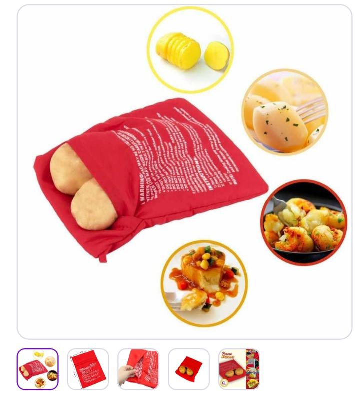 Мешок для приготовления картофеля в микроволновой печи. Поместите необходимое количество картофеля или овощей внутрь мешочка и плотно закройте. Положите мешок отверстием вниз. Запекать необходимо около 4 минут, мощность СВЧ 800Вт. Для других овощей время приготовления зависит от выбранной мощности и может составлять 7-10 минут. Сама таким пользуюсь, очень удобно. 5 средних картофелем готовятся за 6 мин. В наличии несколько штук.