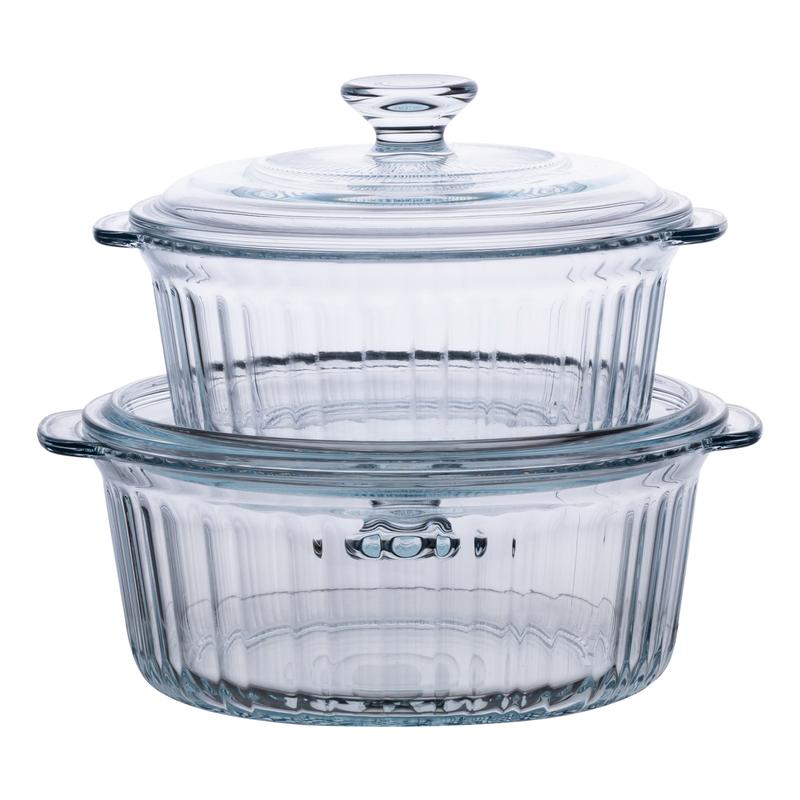 Формы для запекания набор 2 шт стеклянные с крышками круглые hp-34-26