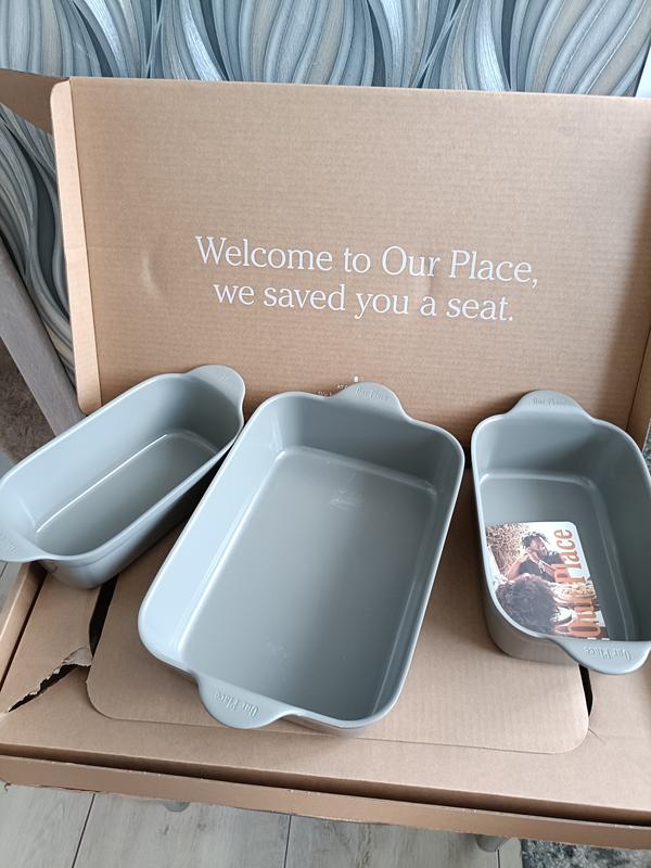 Набор из трех форм для запекания или жарки на огне, это алюминий покрытый керамикой,готовить одно удовольствие с минимумом масла Американский бренд Our Place Размеры 22*15*8 см 22.5*16*8 см 20*30* 8 см На дополнительные вопросы ответь с радостью) Доставка Шафа лиш Новою Почтою, а укр почтою повна оплата продавцю на карту
