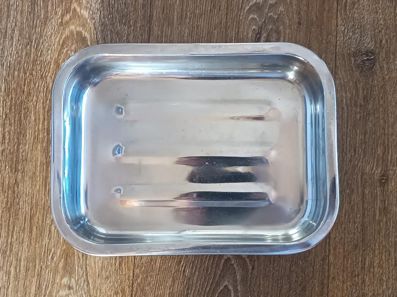 --- Форма для запекания из нержавеющей стали с крышкой | Англия 🇬🇧 | Б/в Практичная форма из нержавеющей стали, привезенная из Великобритании. Имеет удобную крышку с рельефными ребрами и две ручки для безопасной переноски. Подойдет для запекания мяса, овощей, лазаньи или как контейнер для хранения. 📐 Размер: 27×20×6 см 🔩 Материал: нержавеющая сталь 📦 Состояние: б/в, есть легкие следы пользования 🎁 Происхождение: Англия Надежная, легкая. Выглядит винтажно, что добавляет шарма кухне или дачному интерьеру. ---