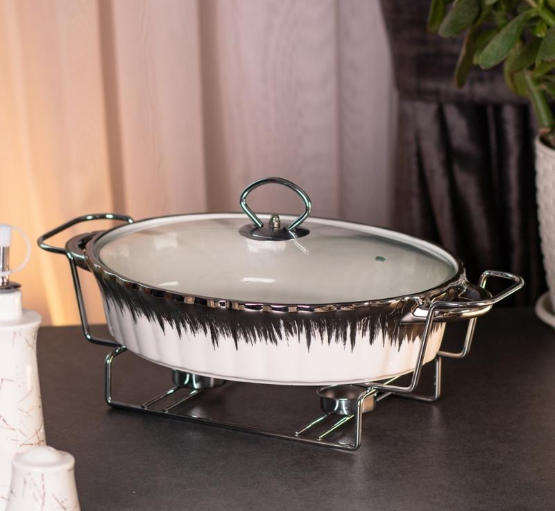 Мармит yiwu hp1022 фарфоровый 1 л 31х19х13 см белый с серебряным