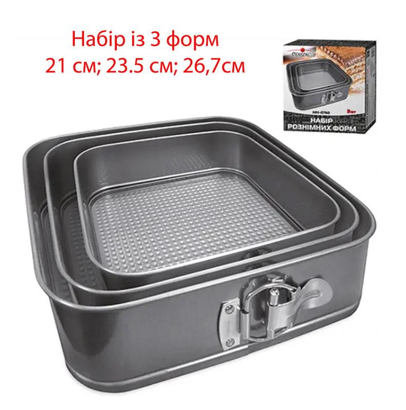 Формы разъемные "квадрат" 3шт/наб 21/23.5/26*7см, формы для выпечки