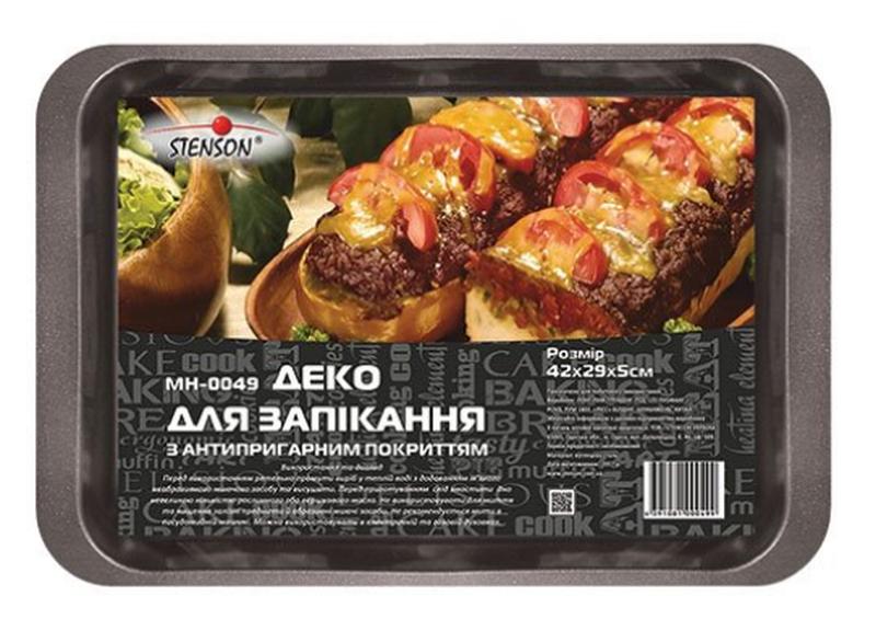 Деко Stenson виготовлено з високовуглецевої сталі, який дозволить використовувати мінімум жирів. Форма швидко і рівномірно нагрівається, вона міцна і довговічна. Деко для запікання з високовуглецевої сталі. З боків деко є спеціальні ручки для транспортування. Чудово підходить для приготування риби, м'яса, овочів. Характеристики: Деко для запікання Розмір 42 x 29 x 4 см