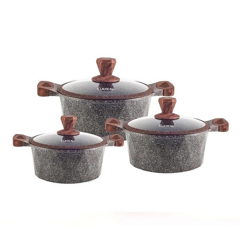Набор посуды Lexical LG-340603-2 состоит из 3-х кастрюль разного объема. Все кастрюли с крышками. Кастрюли изготовлены из алюминия. Крышки из термостойкого стекла. Набор подходит для всех видов плит, включая индукционные. Характеристики: - практичное и нескользящее soft touch покрытие ручек - крышка из жаропрочного стекла с ручкой и ободком из стали 18/10 - отверстие на крышке для выхода пара из стали 18/10 - можно мыть в посудомоечной машине - элегантный дизайн - ручка в тон основного цвета - подходит для всех типов плит: газовые, электрические, галогенные, стеклокерамические, индукционные - экологически безопасно Комплектация: - Кастрюля со стеклянной крышкой Ø24 см., - Кастрюля со стеклянной крышкой Ø28 см., - Кастрюля со стеклянной крышкой Ø32 см., - Ручки SOFT TOUCH