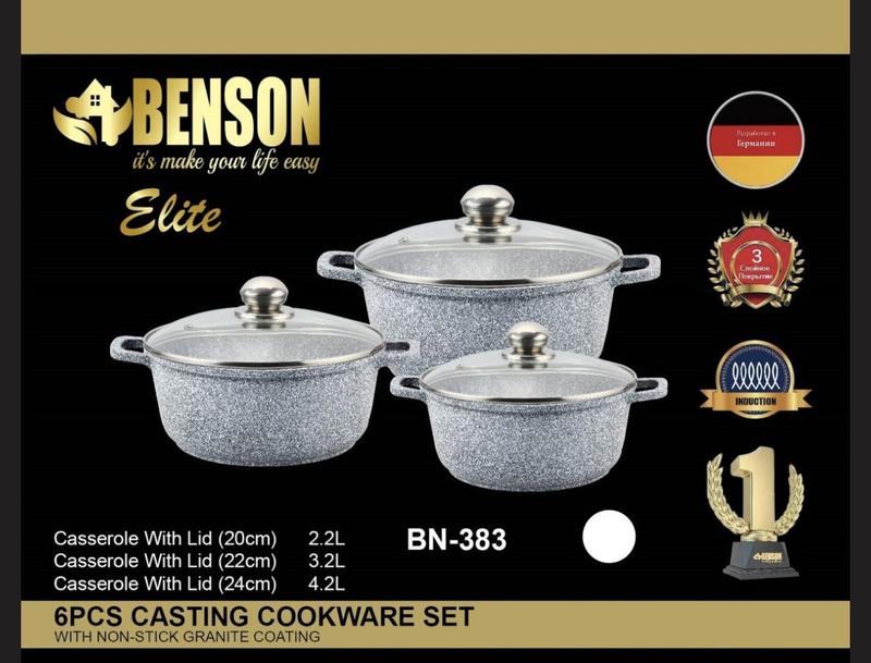 Набор кастрюль6пр 2,2л; 3,2л; 4,2л; серый с белыми вкрапрениями, гранитное покрытие bn-383...