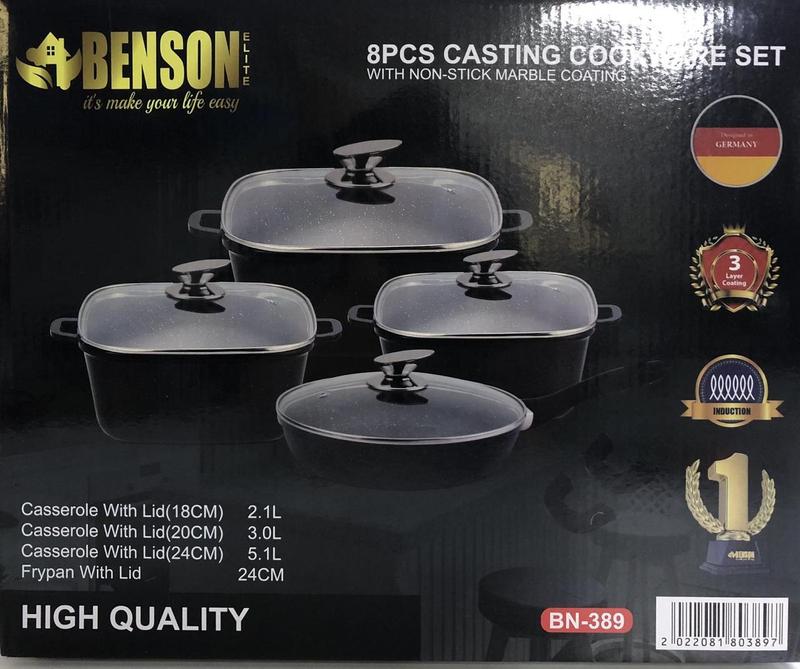 Набор квадратных кастрюль 8 пр bn 389 (2 шт/ящ)