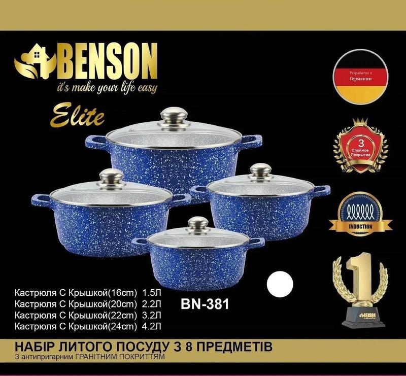 Набор кастрюль8пр1,5л; 2,2л; 3,2л; 4,2л; синий с белыми вкрапрениями, гранитное покрытие b...