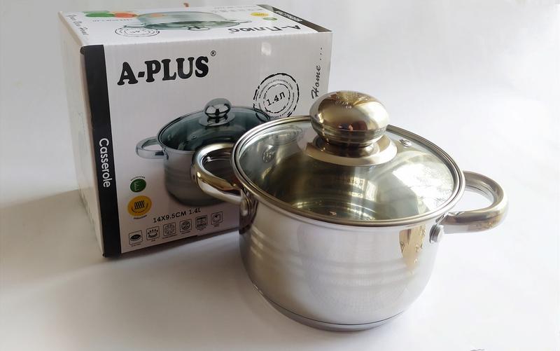 Кастрюля с двойным дном и стеклянной крышкой 1.4 литра.